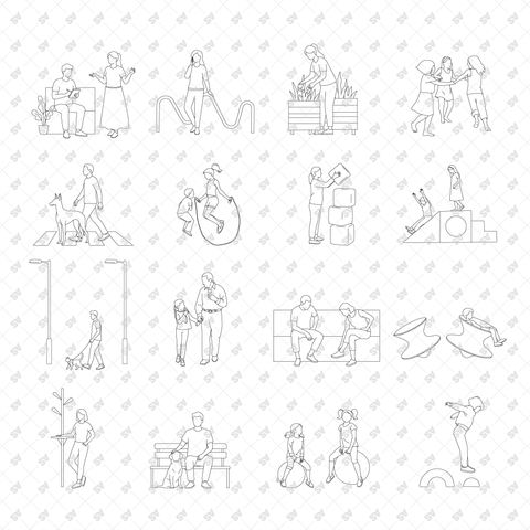 CAD, Vector, PNG People Doing Urban Activities in Front and Side Views